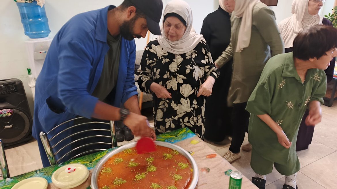 كما شارك الجميع في وجبة غداء تراثية من المسخن الفلسطيني، تزامناً مع موسم قطف الزيتون، أعقبها تقديم الحلويات النابلسية الأصيلة – الكنافة، في أجواء عائلية مفعمة بالود والحنين.
